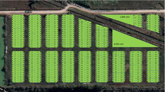 Contará con zonificación residencial urbana, con 498 lotes en 3 etapas, siendo los mismos de 200 mt2. cada uno. A través de asociación con entidad financiera se contará con la posibilidad de construir casas desde 2 ambientes y 55 mt2. cubiertos de avanzada ingeniería, gran durabilidad y mantenimiento térmico.